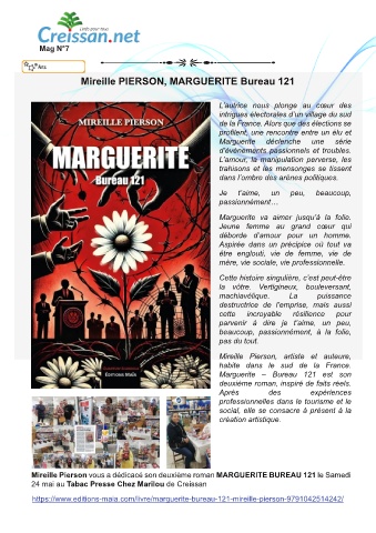 Mireille Pierson vous a dédicacé son deuxième roman MARGUERITE BUREAU 121 le Samedi
